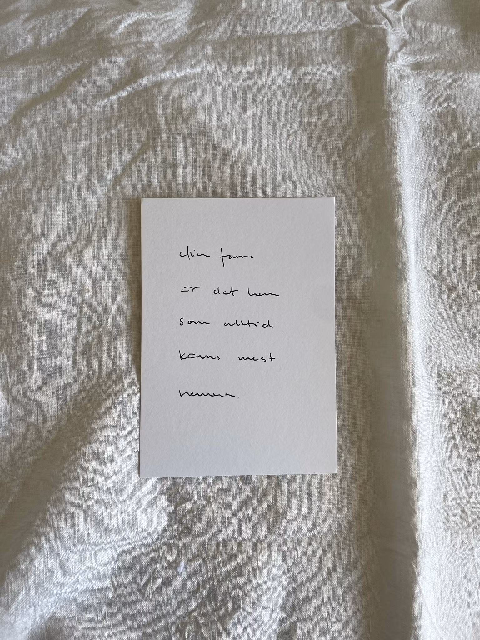 Texten är skriven på 250g kartong i varm vit.