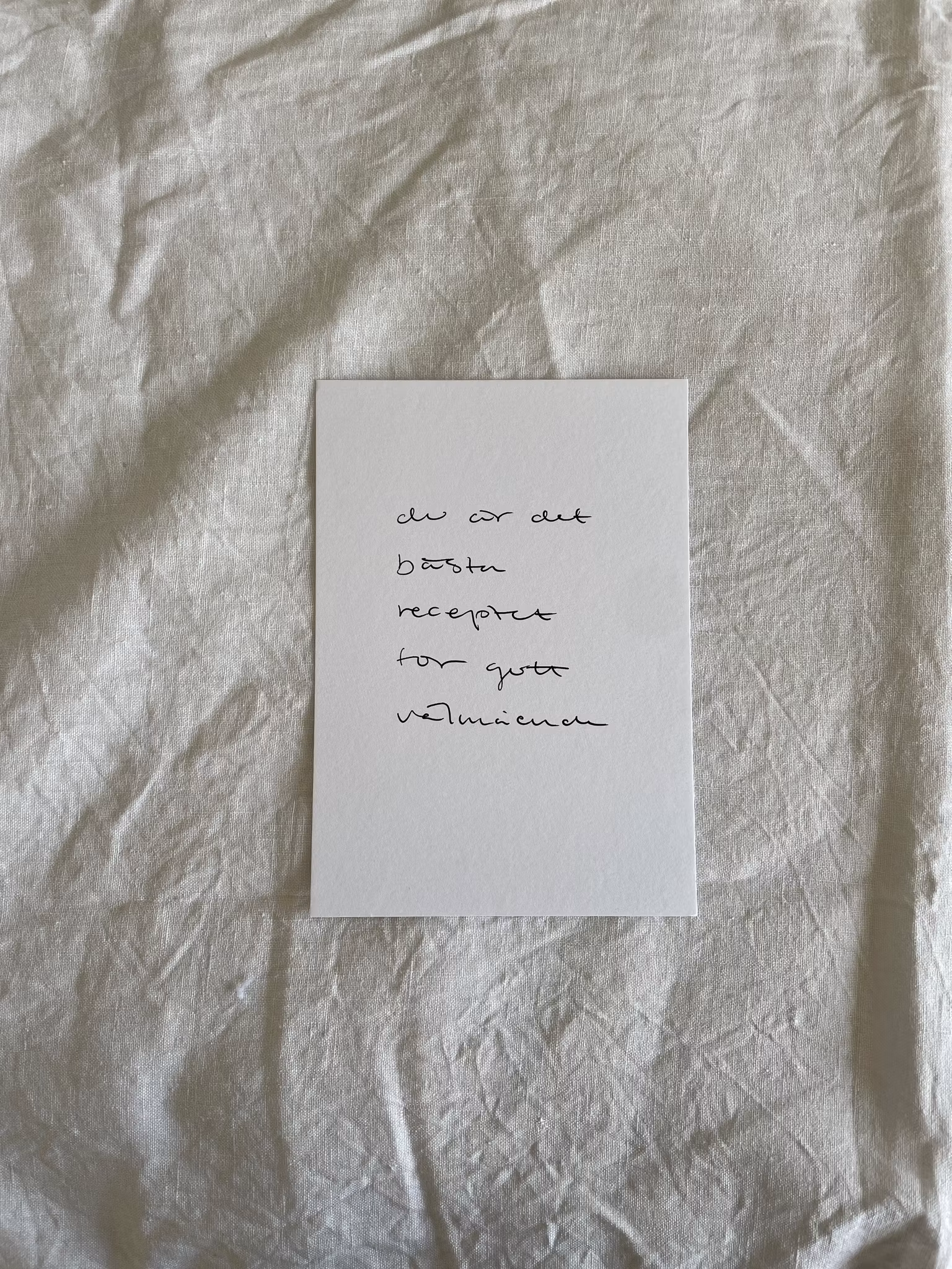 Affisch med handskriven text: "Du är det bästa receptet för gott välmående."