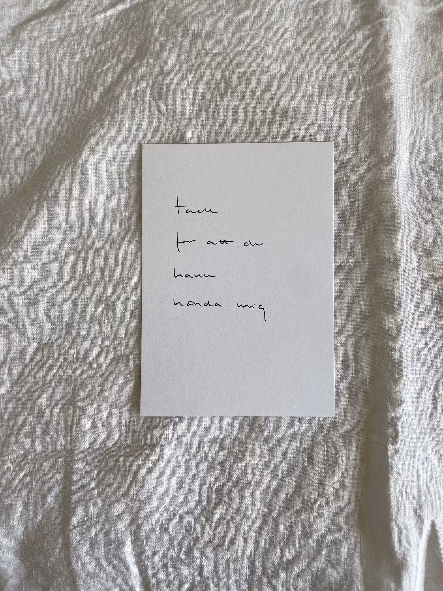 Affisch med handskriven text: "Tack för att du hann hända mig."